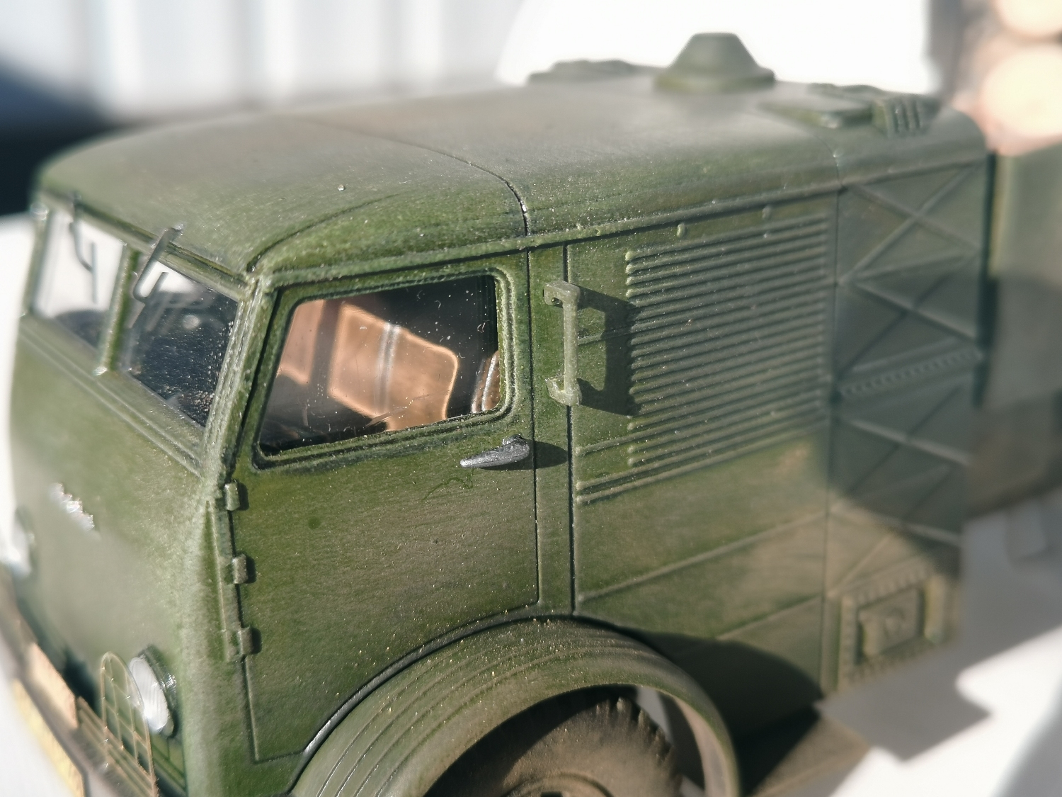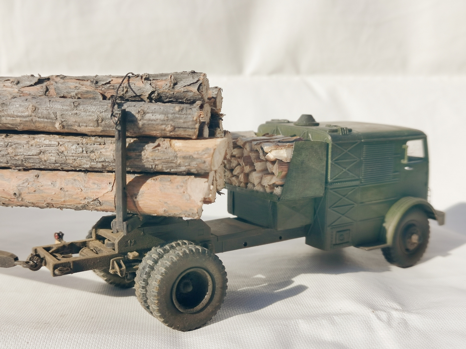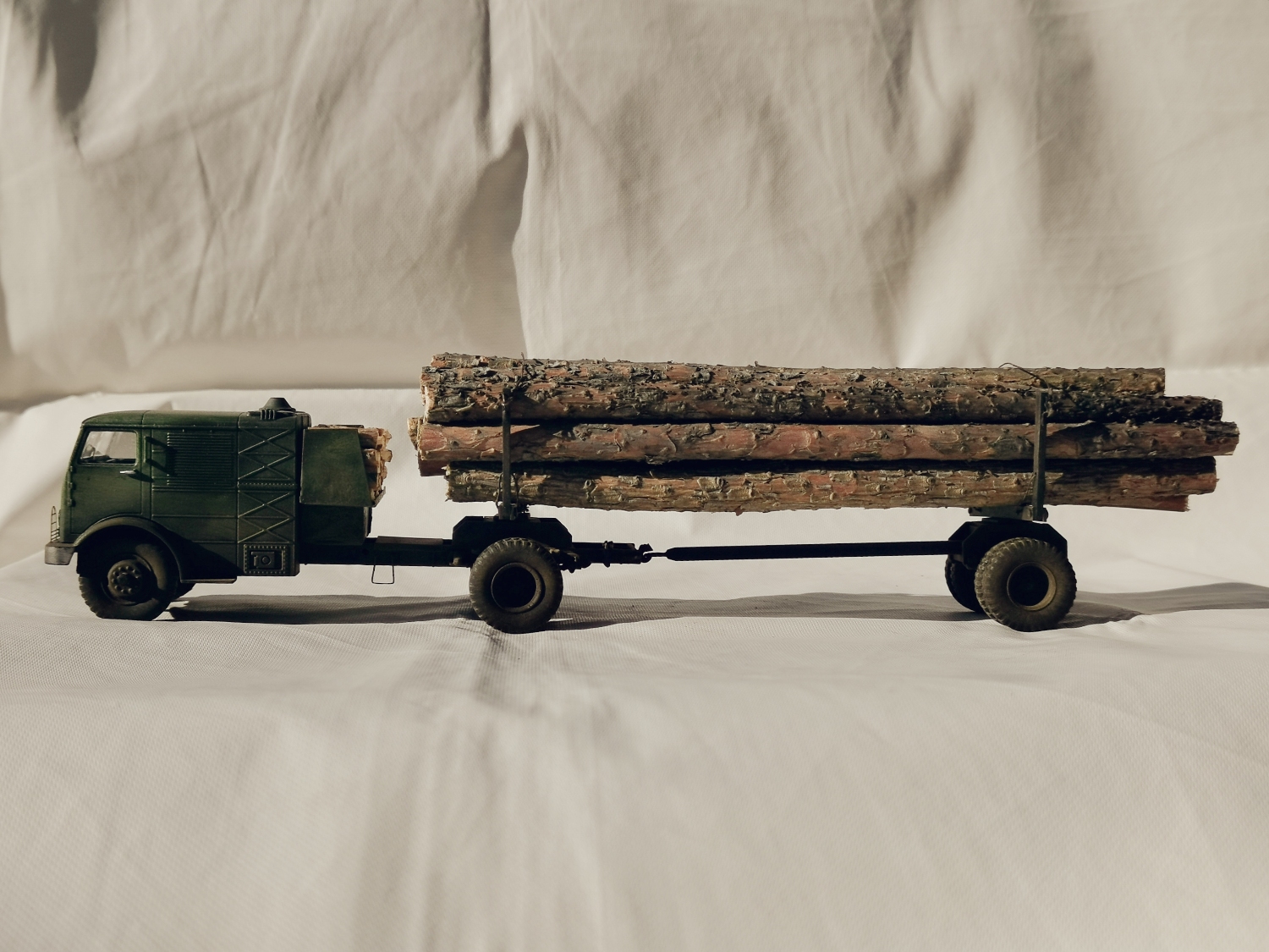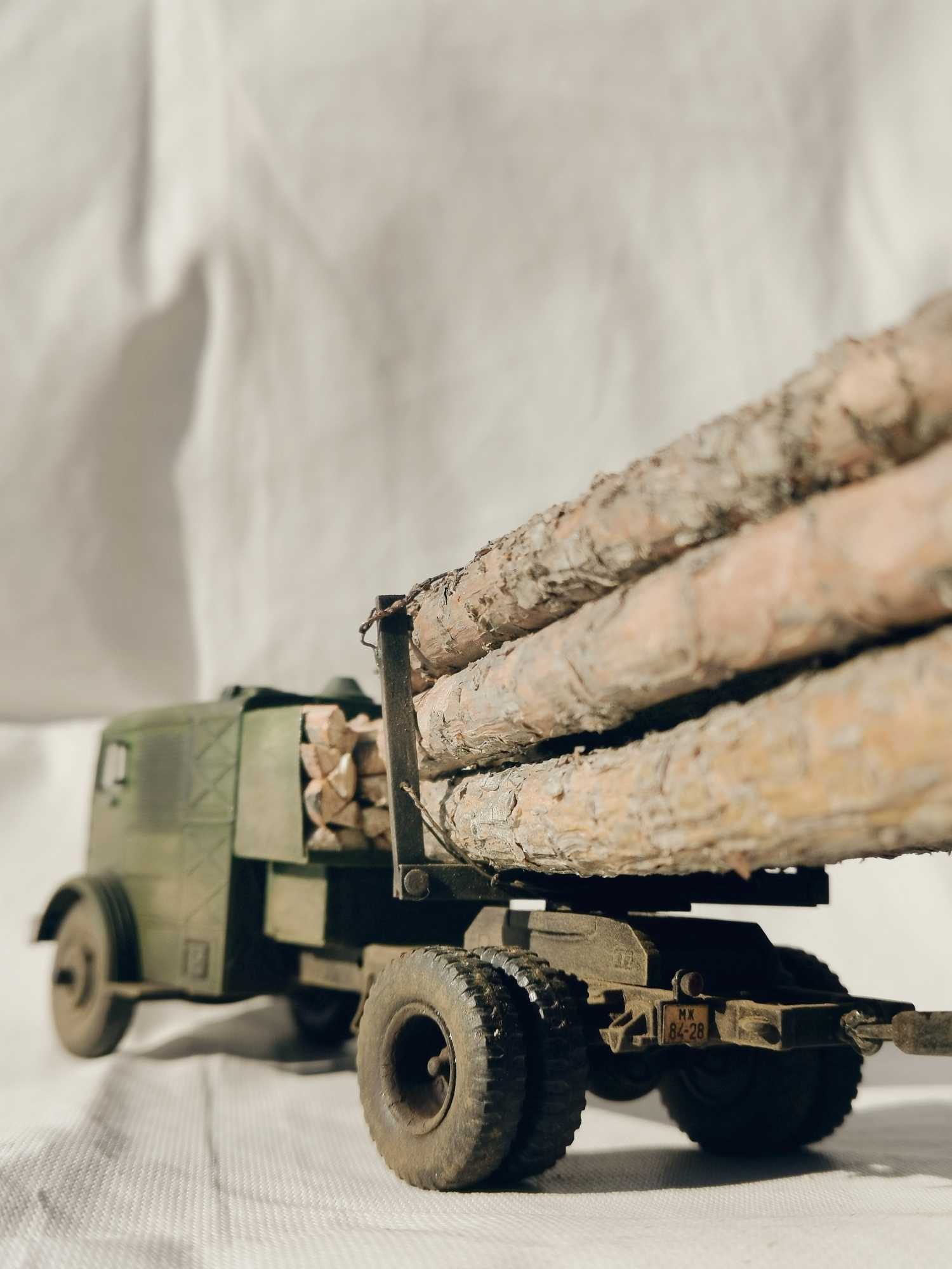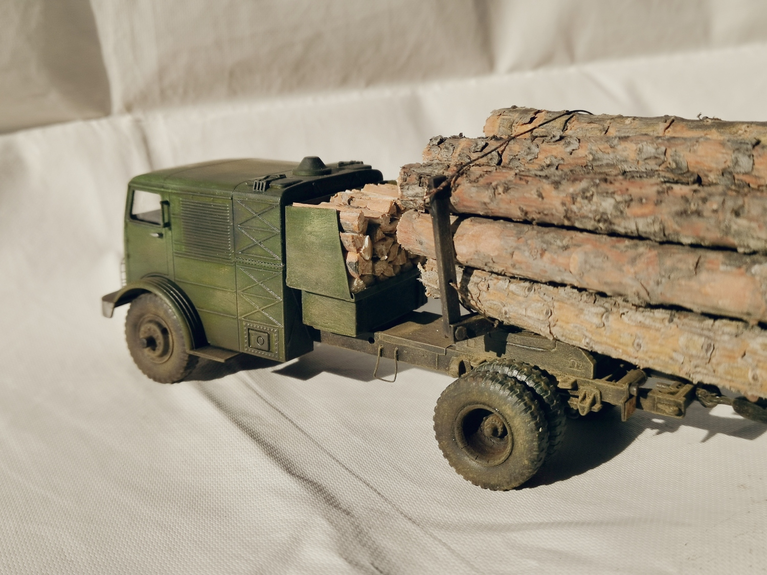 Дорогие Друзья. Представляю очередную работу автозавода, конверсия НАМИ-012. Из доработок: сточены углы кабины в передней её части, ступицы на передних колёсах, бункер за кабиной, подножка и площадка на раме за бункером, троса на хлыстовозе, груз. Покраска акрил Звезда (кисть), глянцевый и матовый лаки KUDO, смывка маслянная краска+растворитель для маслянных красок, пигмент сухая и маслянная пастель Сонет