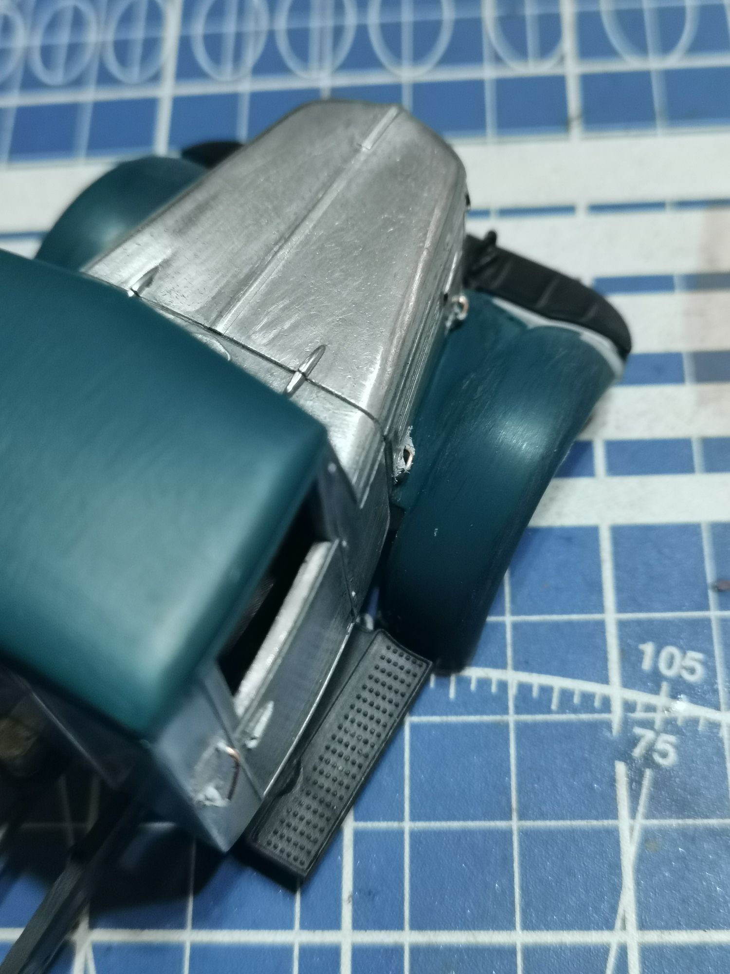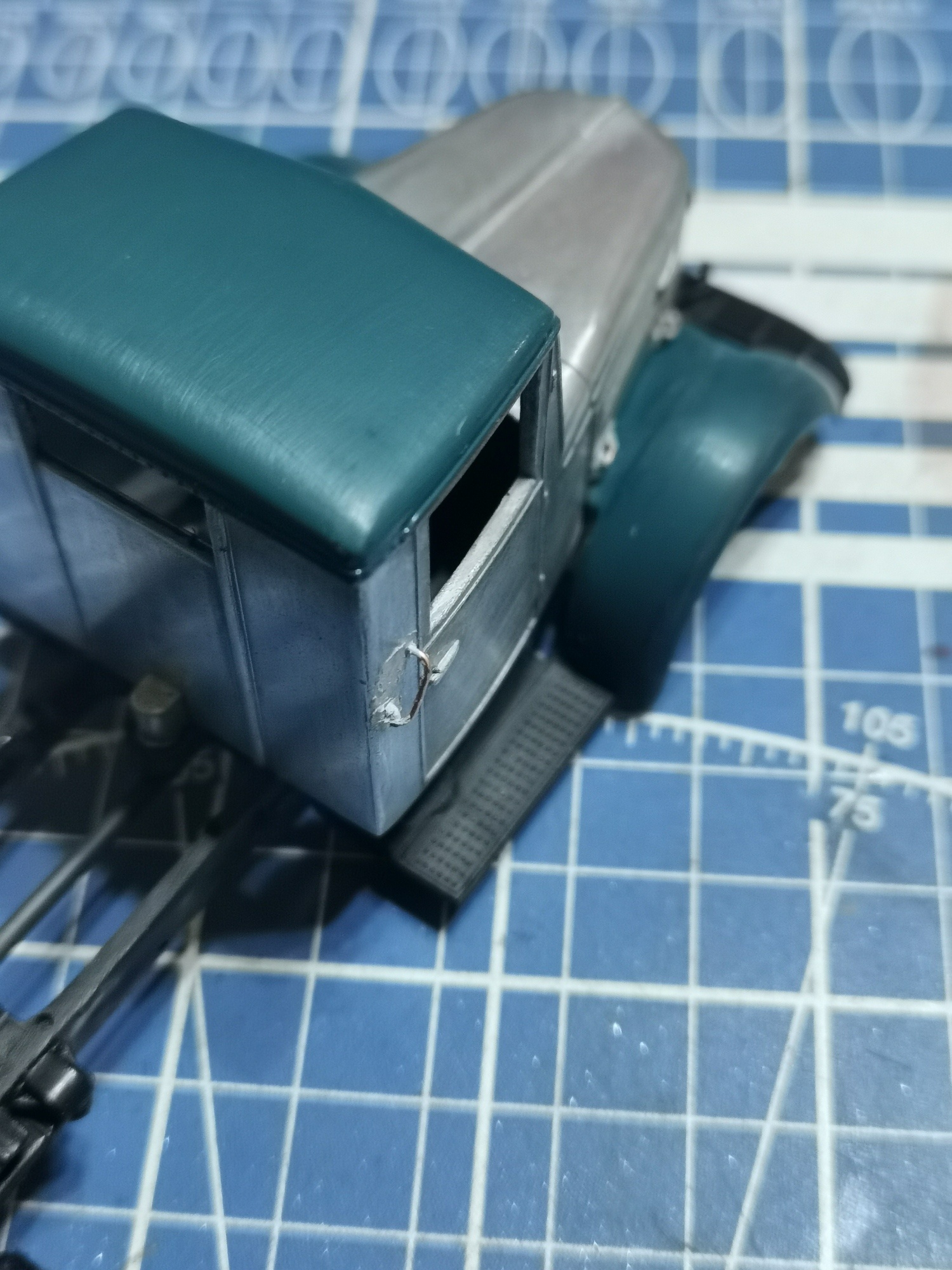 Принцип доработки модели во многом будет совпадать с ЯАЗ-205, и вдаваться в подробности не имеет смысла, за некоторыми исключениями. И первое, что мне пришлось сделать помимо стачивания и замены ручек на боковинах капота, это ручки за дверями кабины