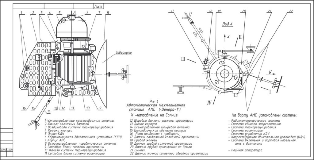 "В 1960г в ОКБ -1 С.П. Королева полным ходом шло проектирование и изготовление 4 однотипных автоматических станций, предназначенных для исследования Марса и Венеры. Запуск марсианских станций Марс-1960А (10.10.1960) и Марс-1960В (12.10.1960) закончился неудачей из-за аварии 3-ей ступени ракеты-носителя. Запуск первой аналогичной станции в сторону Венеры (04.02.1961) также закончился неудачей по причине отказа разгонного блока. Запуск второй станции на Венеру прошел удачно (12.02.1961), и разгонный блок вывел станцию "Венера-1"на траекторию полета к Венере. В ходе полета со стации шел большой поток научной информации. Связь со станцией была потеряна, когда она находилась на расстоянии около 2млн км от Земли. По расчетным данным станция пролетела на расстоянии примерно 100000км от планеты и вышла на гелиоцентрическую орбиту.