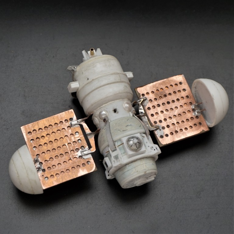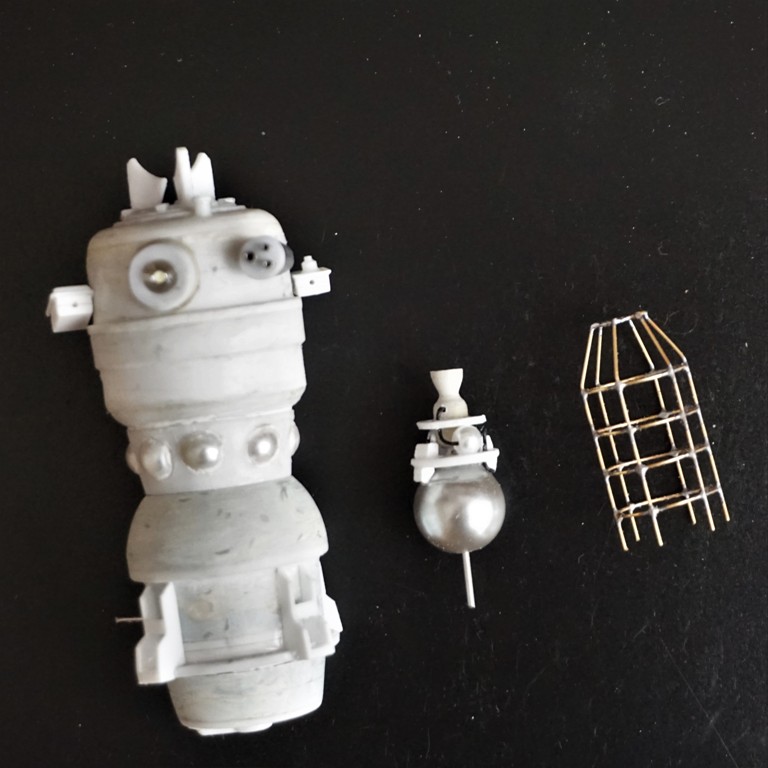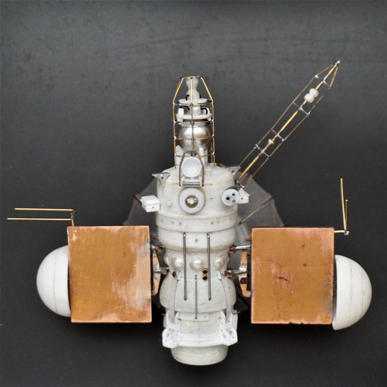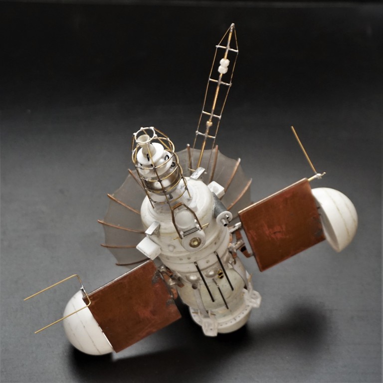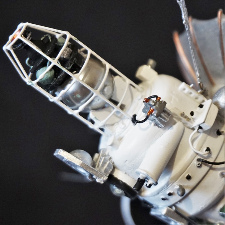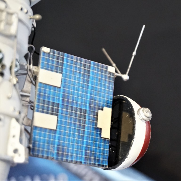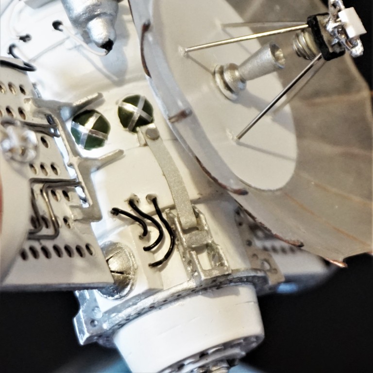 Произведена окраска корпуса станции, солнечных панелей и полусфер радиаторов. При помощи проволочного припоя на солнечных панелях уложены трубопроводы системы охлаждения, из литника и проволоки, латунной трубки изготовлены всенаправленные антенны, которые установлены на штатные места на полусферах радиаторов.