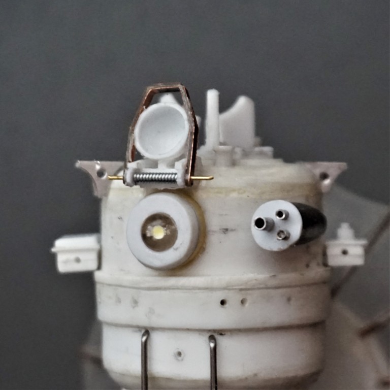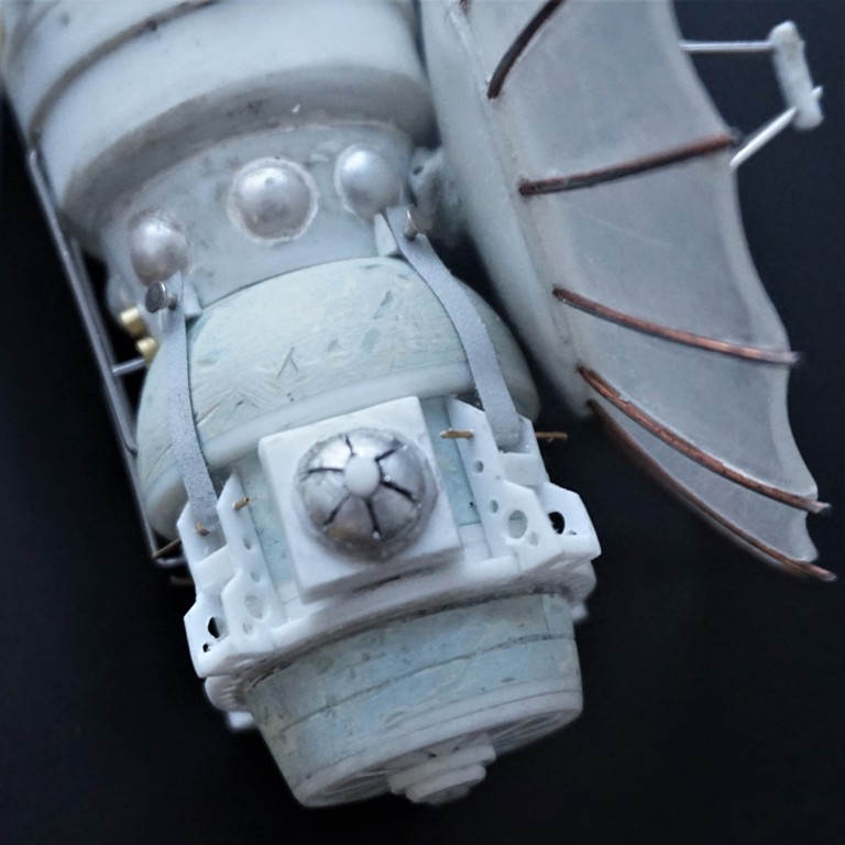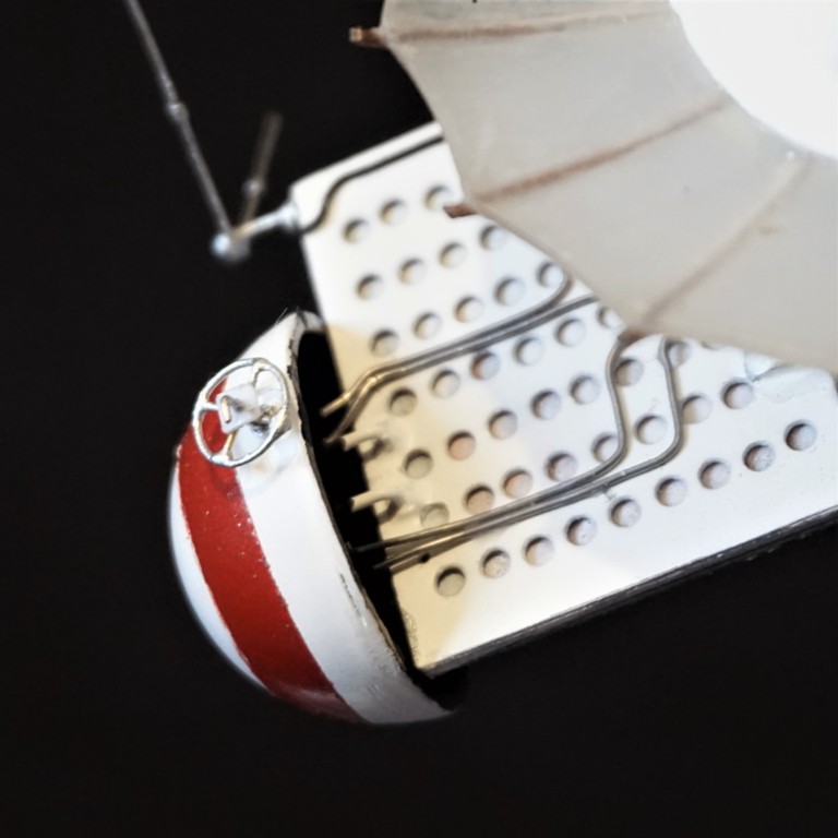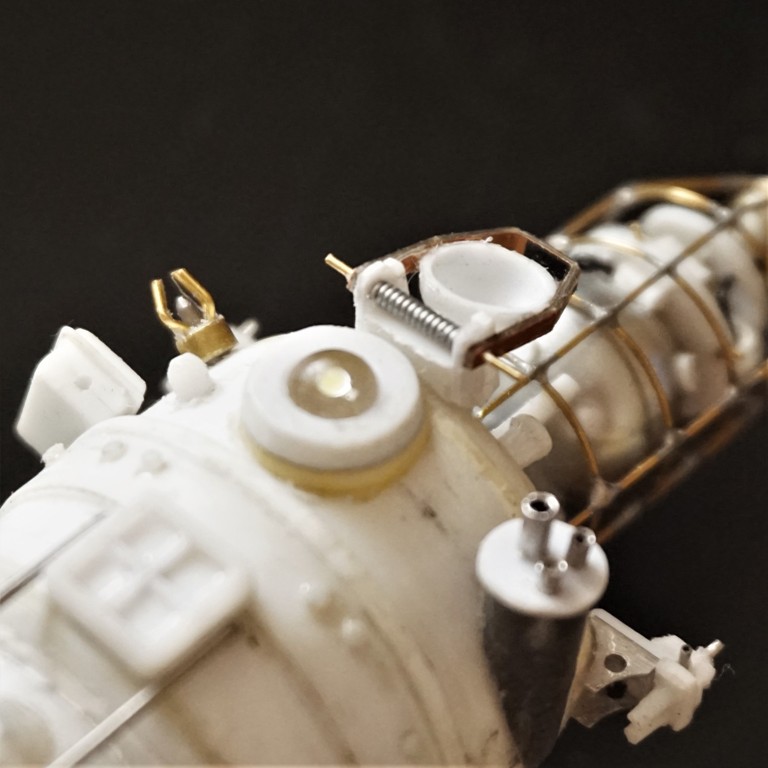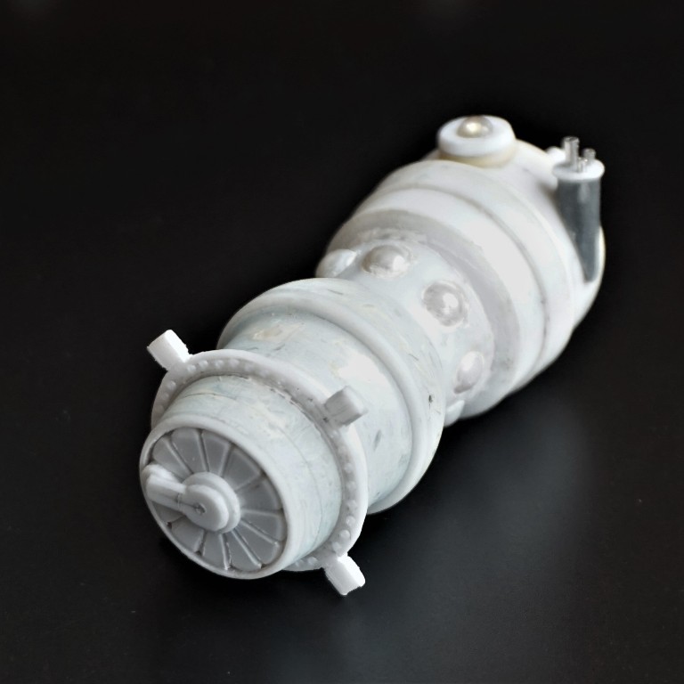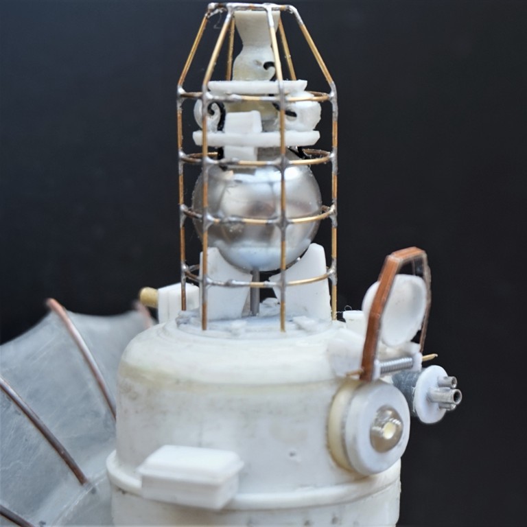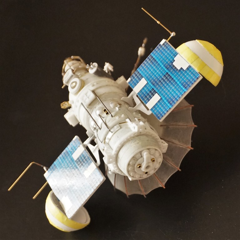 Произведена окраска корпуса станции, солнечных панелей и полусфер радиаторов. При помощи проволочного припоя на солнечных панелях уложены трубопроводы системы охлаждения, из литника и проволоки, латунной трубки изготовлены всенаправленные антенны, которые установлены на штатные места на полусферах радиаторов.
