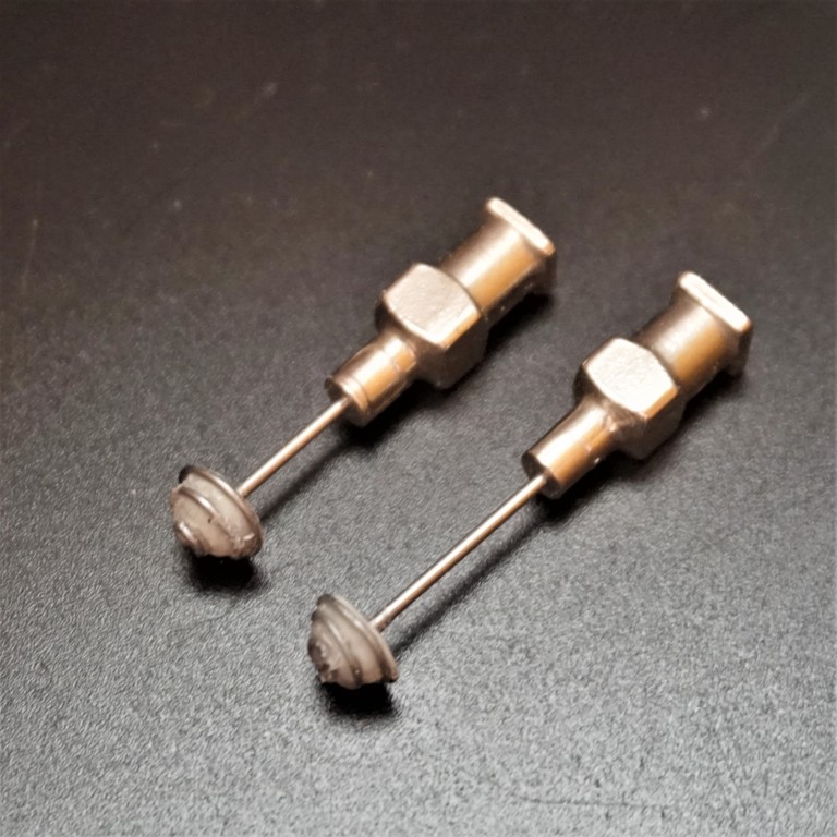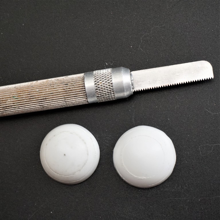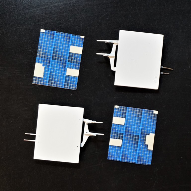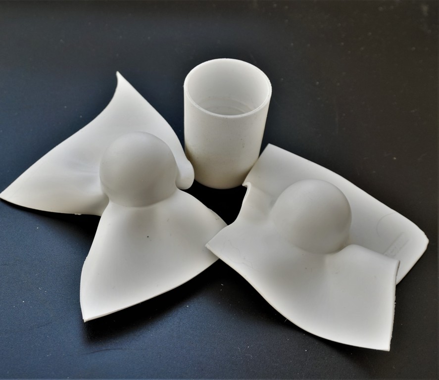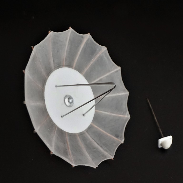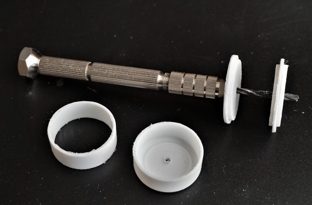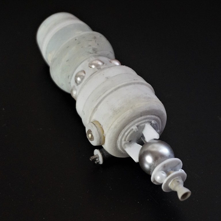 Следом пошло изготовление полусфер радиаторов системы терморегулирования станции. Здесь был использован метод термопластичного формования детали . Матрицей послужила крышка от шампуня, пуансоном шарик Ф25мм от дезодоранта. Пластинка листового пластика разогревалась над плиткой, после чего производилось термоформование. После обрезки лишнего материала и вклеивания днища получены два радиатора.