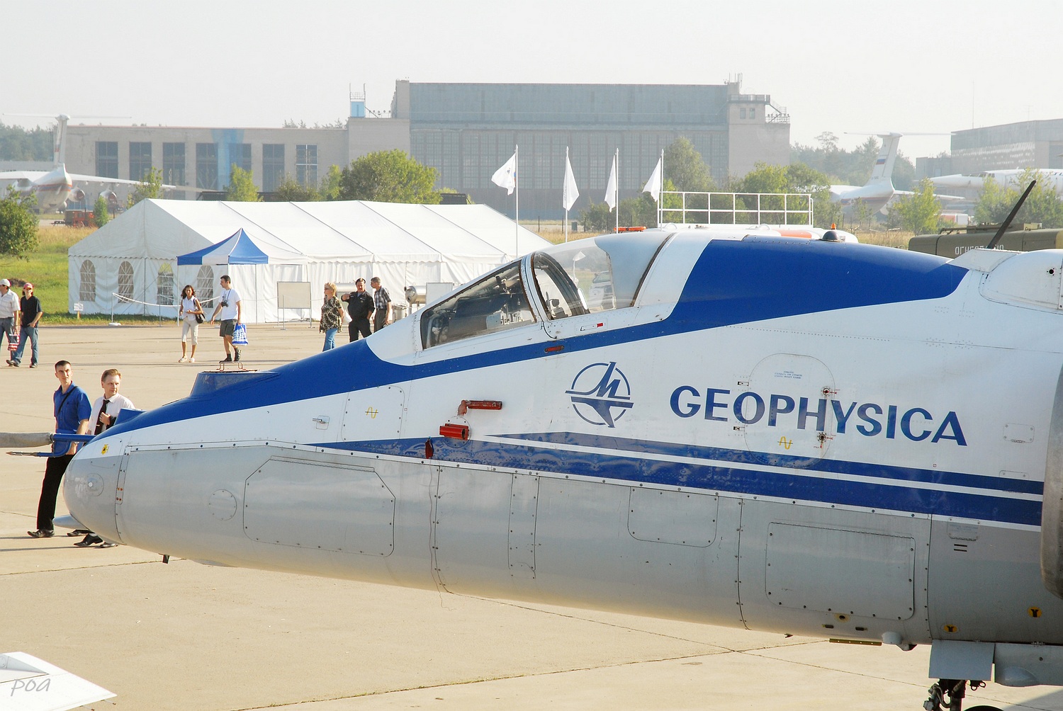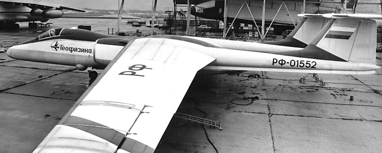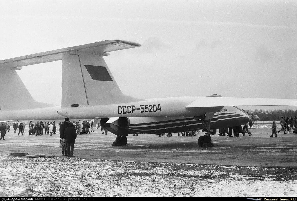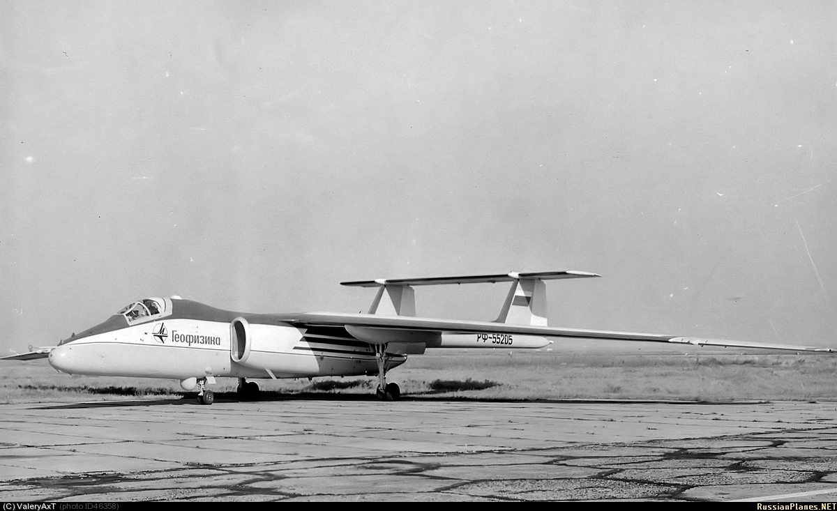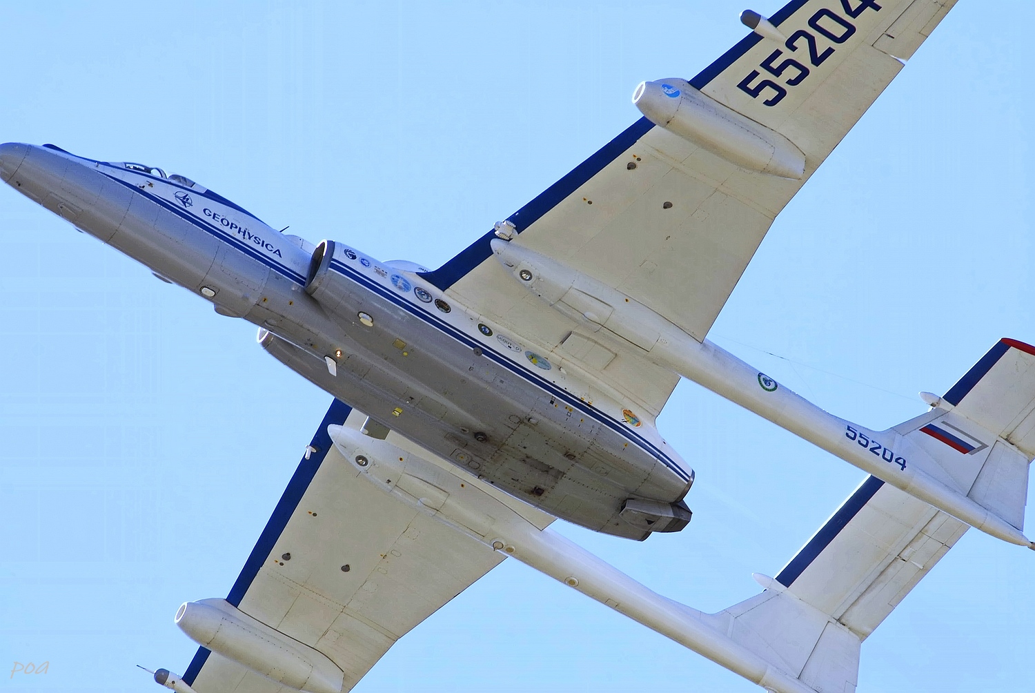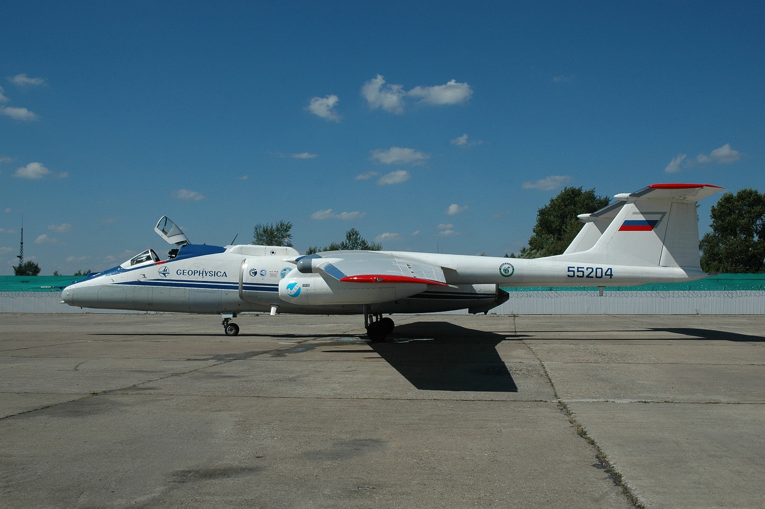 Борт РФ-55204 чтобы как-то выжить при отсутствии финансирования руководство КБ было вынуждено использовать в коммерческих целях. Самолет начал посещать международные аэрокосмические салоны и участвовать в исследованиях атмосферы земли в различных регионах мира. Когда самолет готовили к очередному зарубежному турне название на русском заменили на "Geophysica", а аббревиатуру РФ убрали оставив только 55204 т.к. особо дотошливые европейцы задались вопросом: "а почему у вас "РФ", а не "RA" как у гражданских воздушных судов Российйской Федерации? Это военный самолет?"