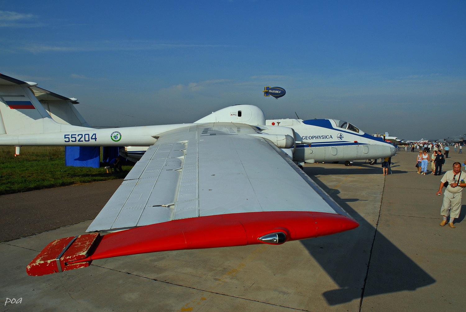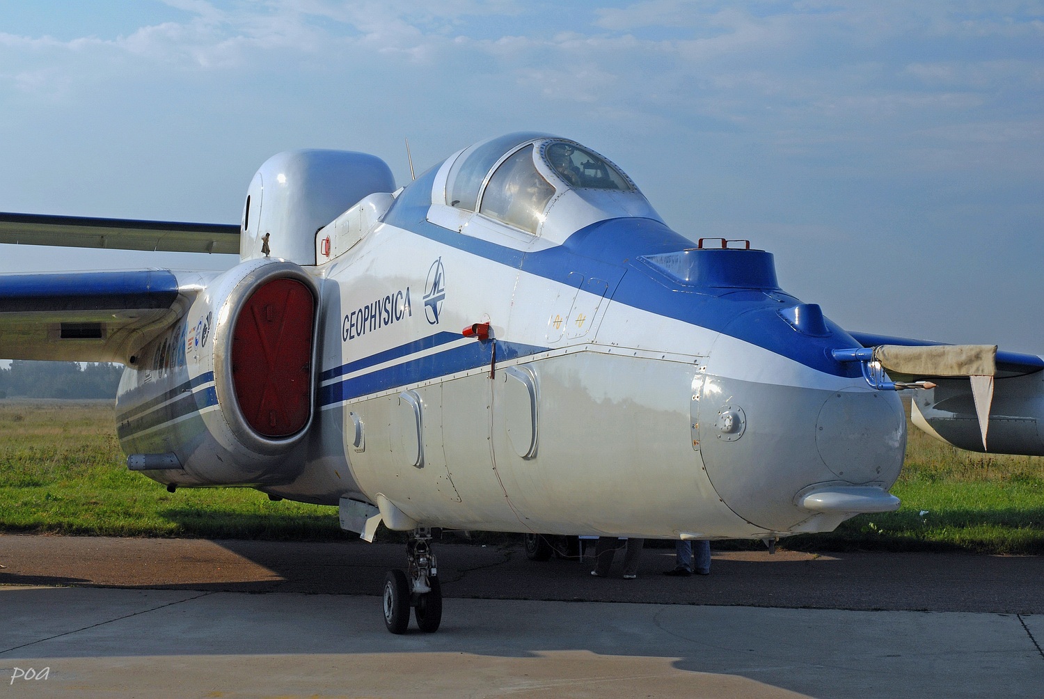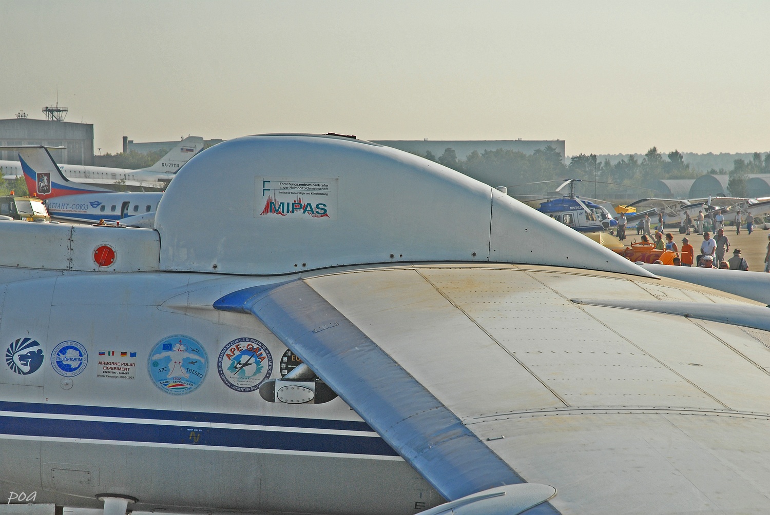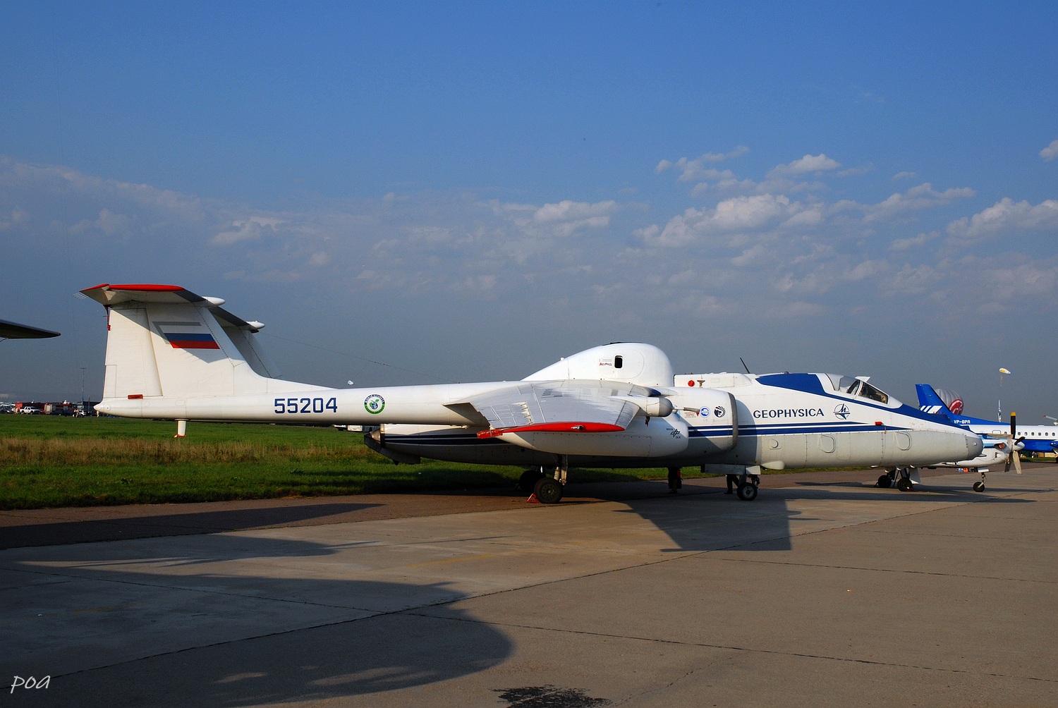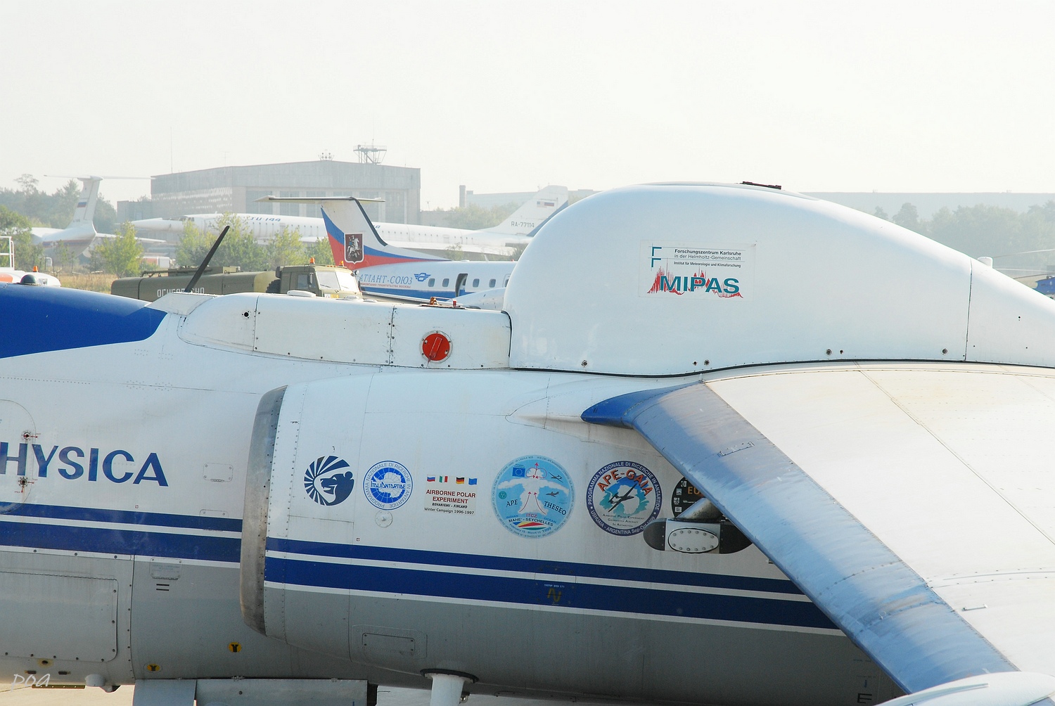 Борт РФ-55204 чтобы как-то выжить при отсутствии финансирования руководство КБ было вынуждено использовать в коммерческих целях. Самолет начал посещать международные аэрокосмические салоны и участвовать в исследованиях атмосферы земли в различных регионах мира. Когда самолет готовили к очередному зарубежному турне название на русском заменили на "Geophysica", а аббревиатуру РФ убрали оставив только 55204 т.к. особо дотошливые европейцы задались вопросом: "а почему у вас "РФ", а не "RA" как у гражданских воздушных судов Российйской Федерации? Это военный самолет?"