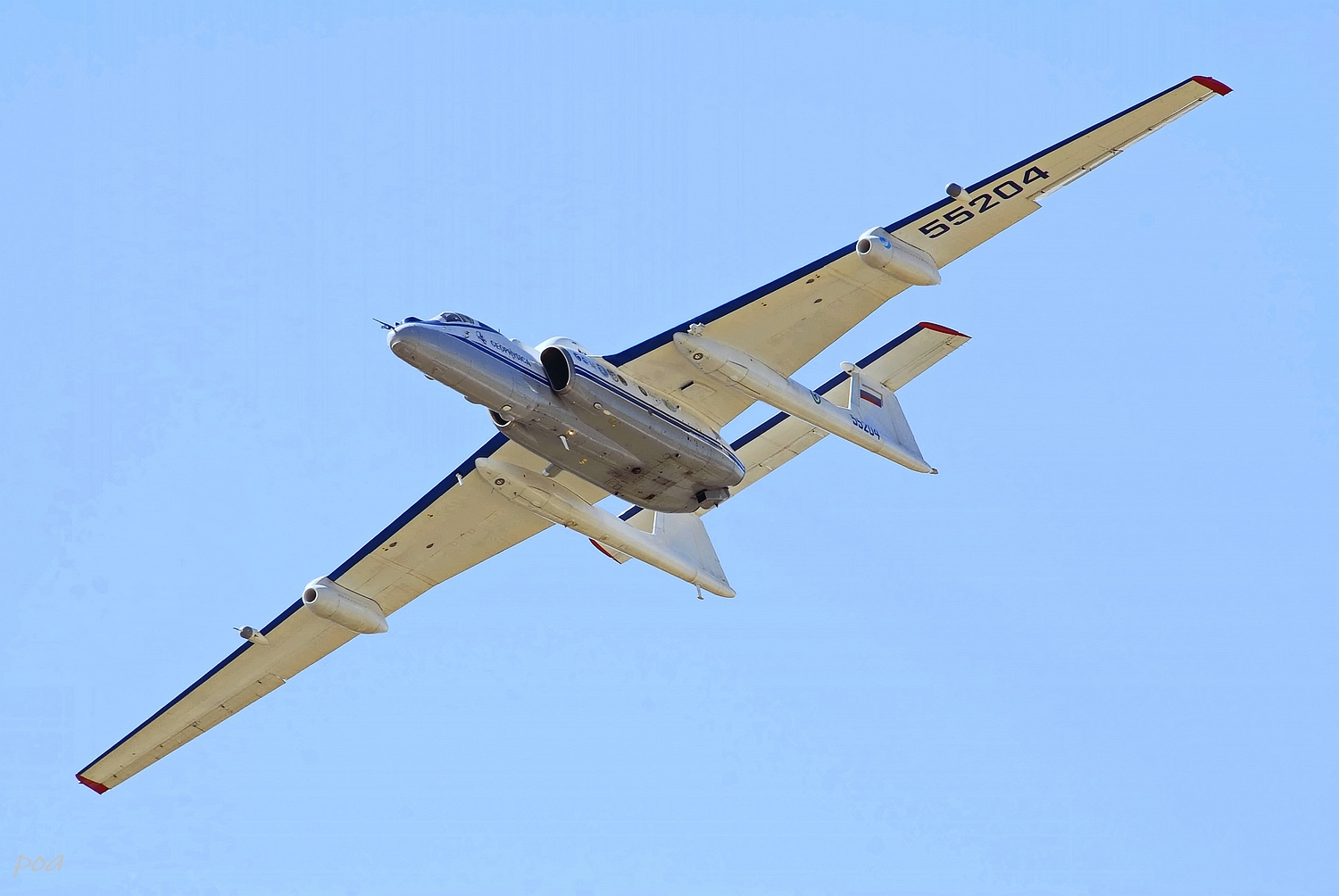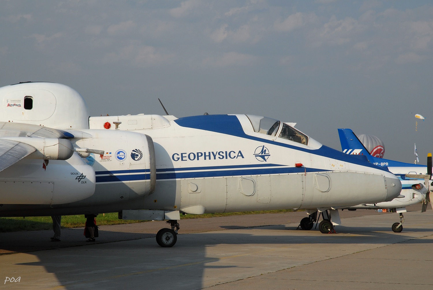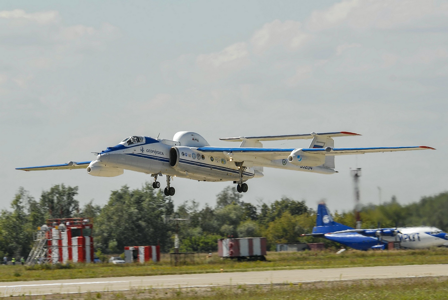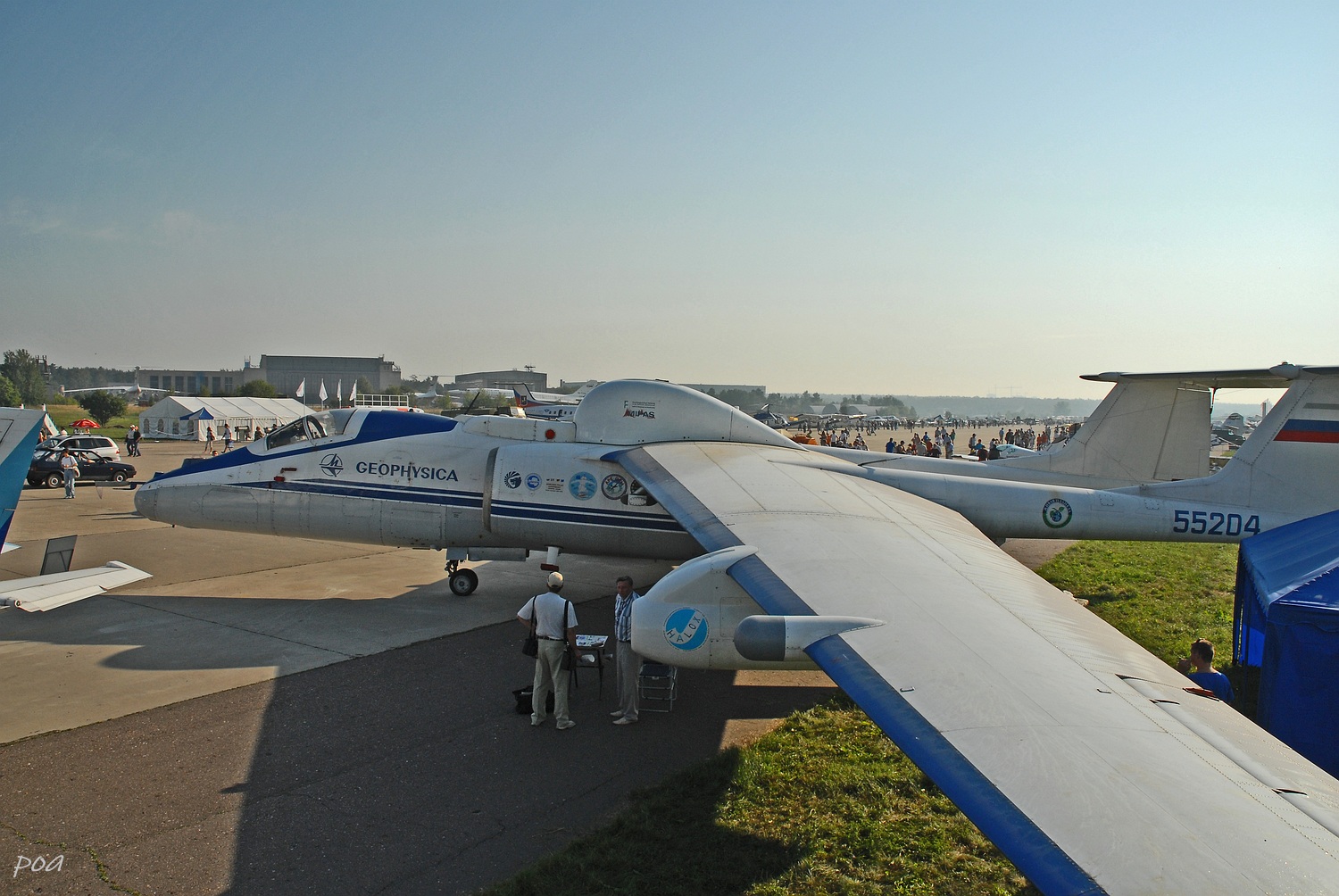 Борт РФ-55204 чтобы как-то выжить при отсутствии финансирования руководство КБ было вынуждено использовать в коммерческих целях. Самолет начал посещать международные аэрокосмические салоны и участвовать в исследованиях атмосферы земли в различных регионах мира. Когда самолет готовили к очередному зарубежному турне название на русском заменили на "Geophysica", а аббревиатуру РФ убрали оставив только 55204 т.к. особо дотошливые европейцы задались вопросом: "а почему у вас "РФ", а не "RA" как у гражданских воздушных судов Российйской Федерации? Это военный самолет?"