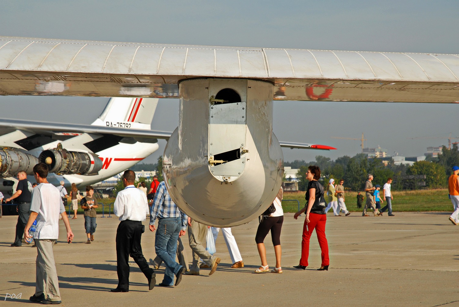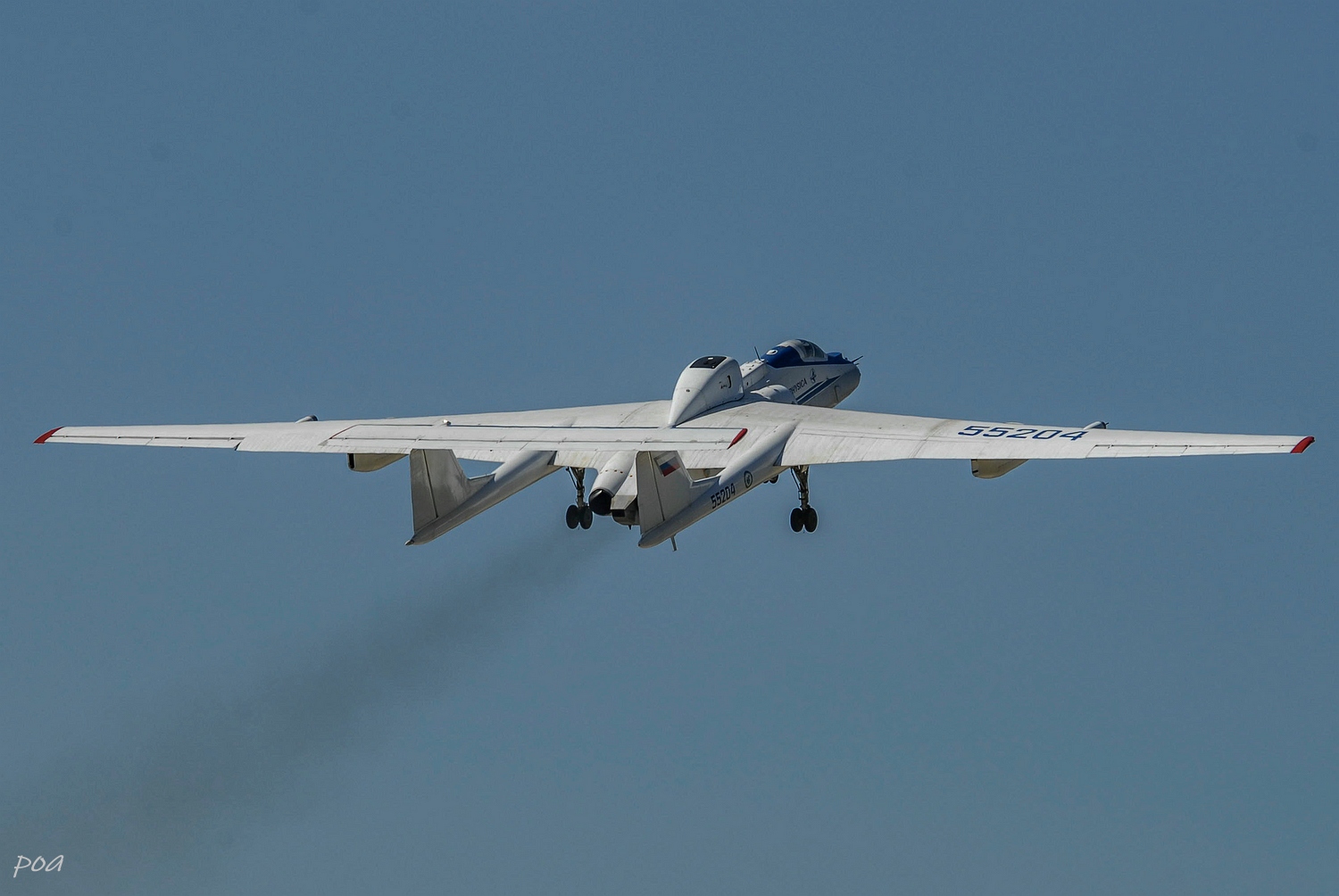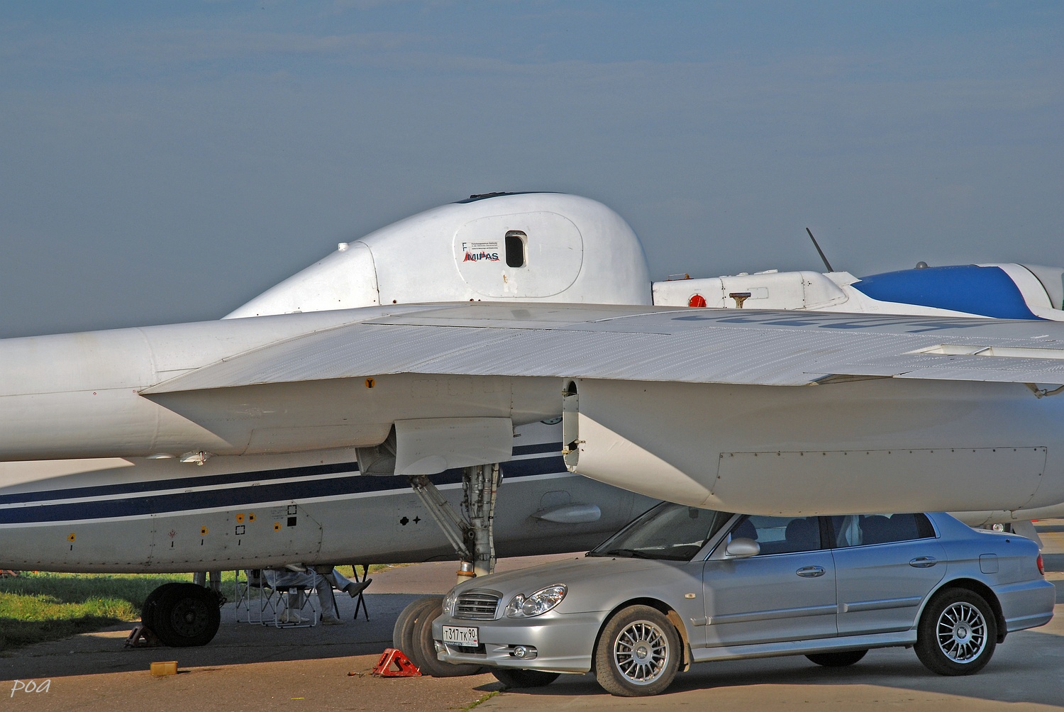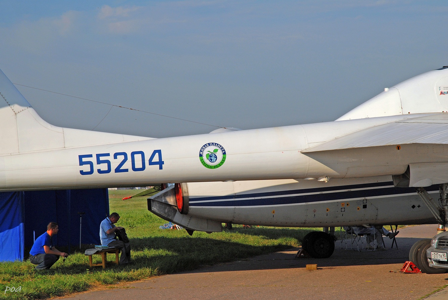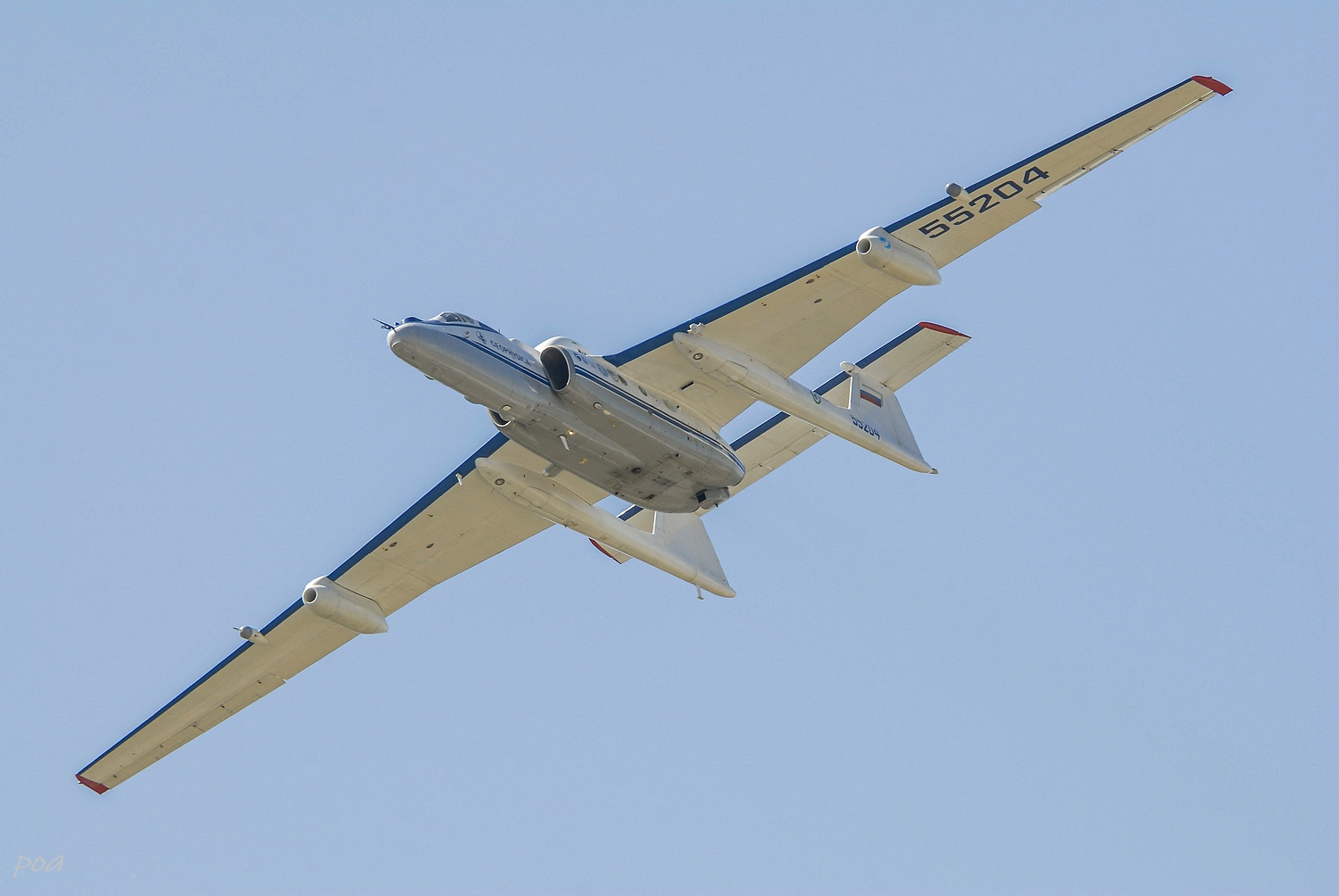 Борт РФ-55204 чтобы как-то выжить при отсутствии финансирования руководство КБ было вынуждено использовать в коммерческих целях. Самолет начал посещать международные аэрокосмические салоны и участвовать в исследованиях атмосферы земли в различных регионах мира. Когда самолет готовили к очередному зарубежному турне название на русском заменили на "Geophysica", а аббревиатуру РФ убрали оставив только 55204 т.к. особо дотошливые европейцы задались вопросом: "а почему у вас "РФ", а не "RA" как у гражданских воздушных судов Российйской Федерации? Это военный самолет?"