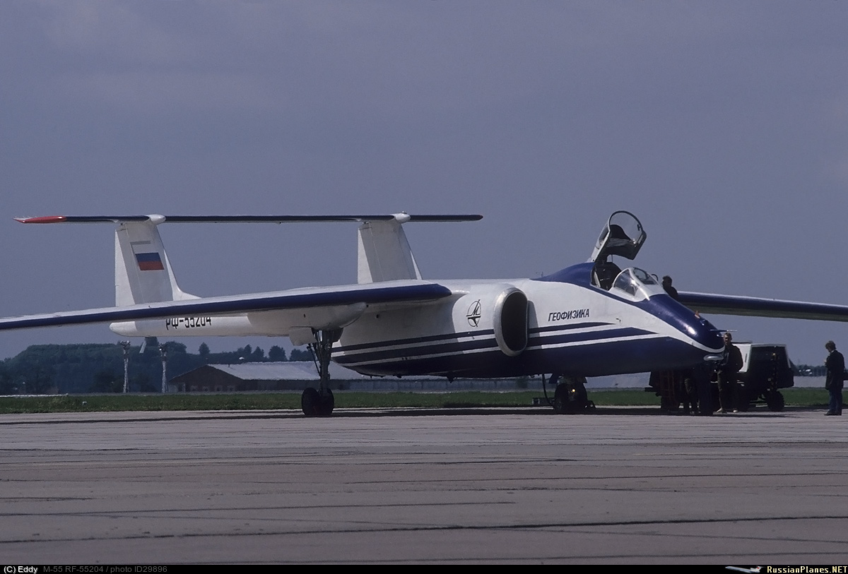 Постройку самолета по теме 55.2 поручили Смоленскому авиационному заводу (СмАЗ). Новый самолет получил обозначение М-55 и собственное имя "Геофизика". Первый опытный образец (борт СССР-01552) совершил первый полет 16 августа 1988 года.